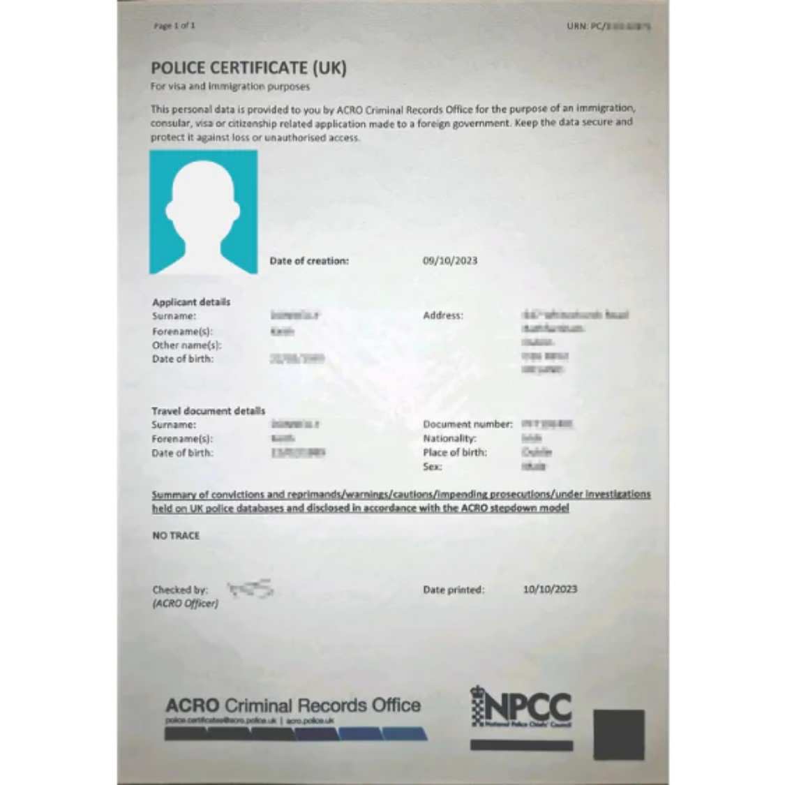 Police ACRO Certificate Translation